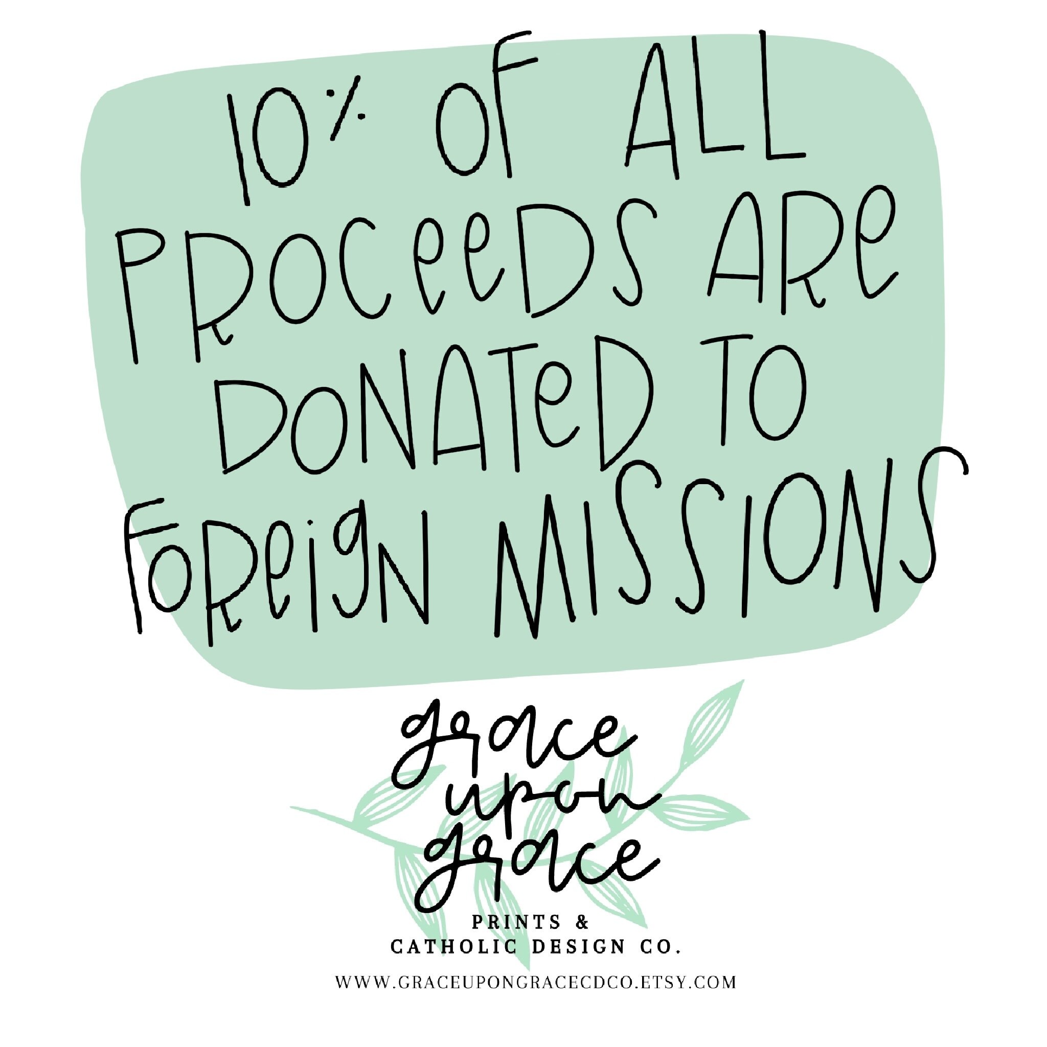 WELCOME TO GRACE UPON GRACE PRINTS & CATHOLIC DESIGN CO! Follow along on Instagram (@graceupongraceprints) for sales, restocks, and new product alerts!