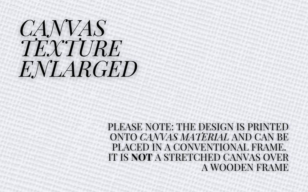 *Please note: the canvas material option is NOT a stretched canvas over a frame. The design has been printed onto canvas material and can be put into a conventional. (See product photos for enlarged texture.)