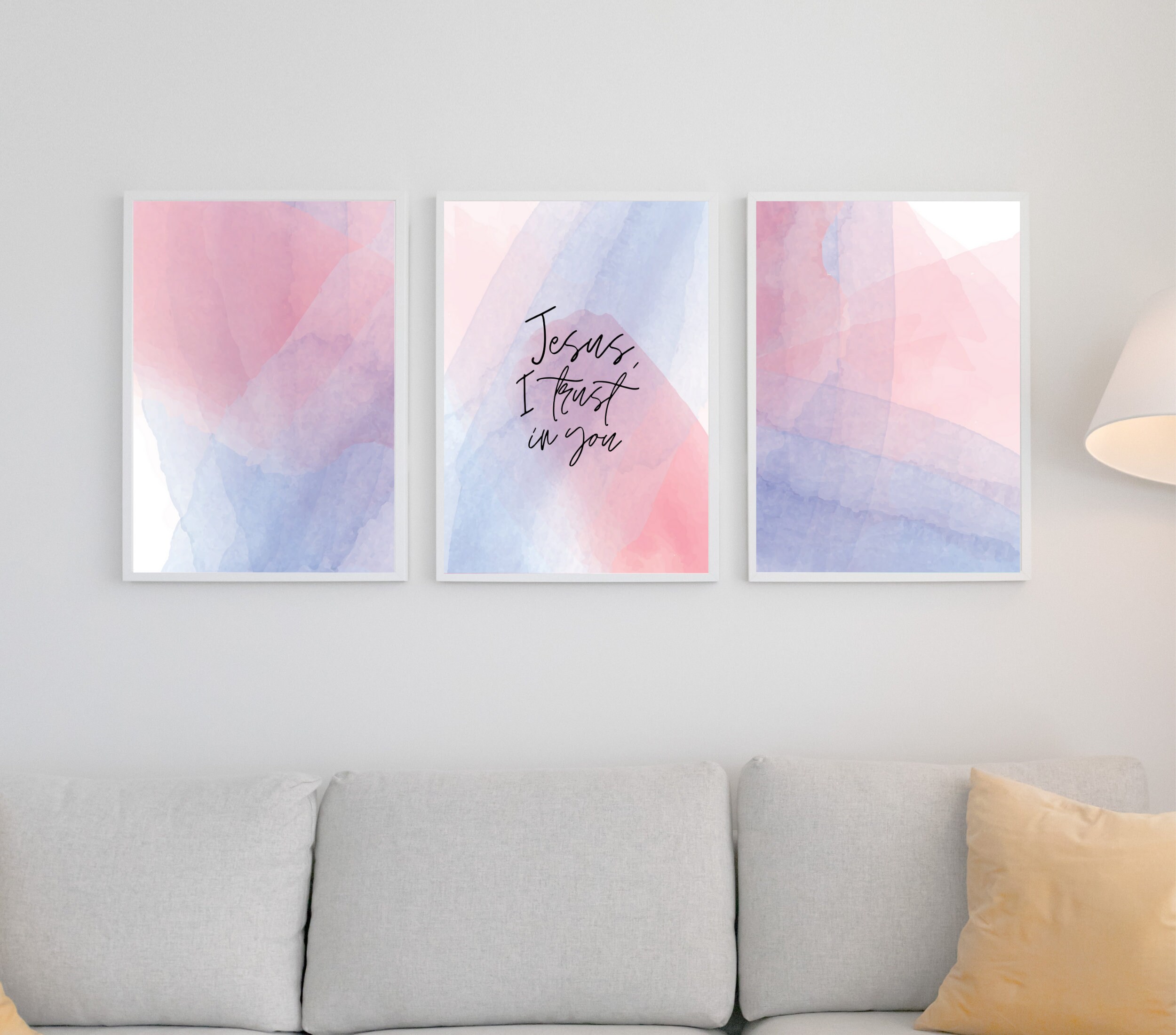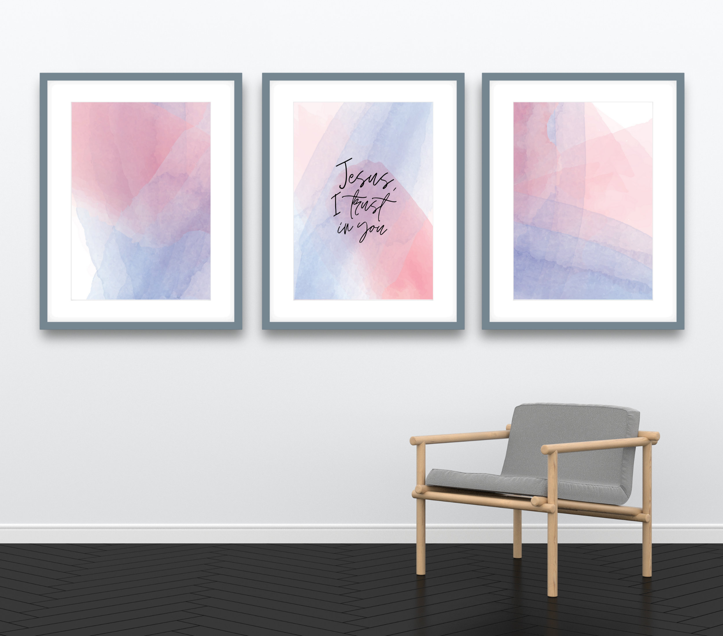 WHAT'S INCLUDED This listing includes three 5x7 high quality JPG images (2 watercolor abstracts and 1 with quote) which can also be printed as 10x14 posters. Print all three and display them as a gallery wall or just one as a single statement piece! (We would be happy to provide other sizes or file types upon request.)