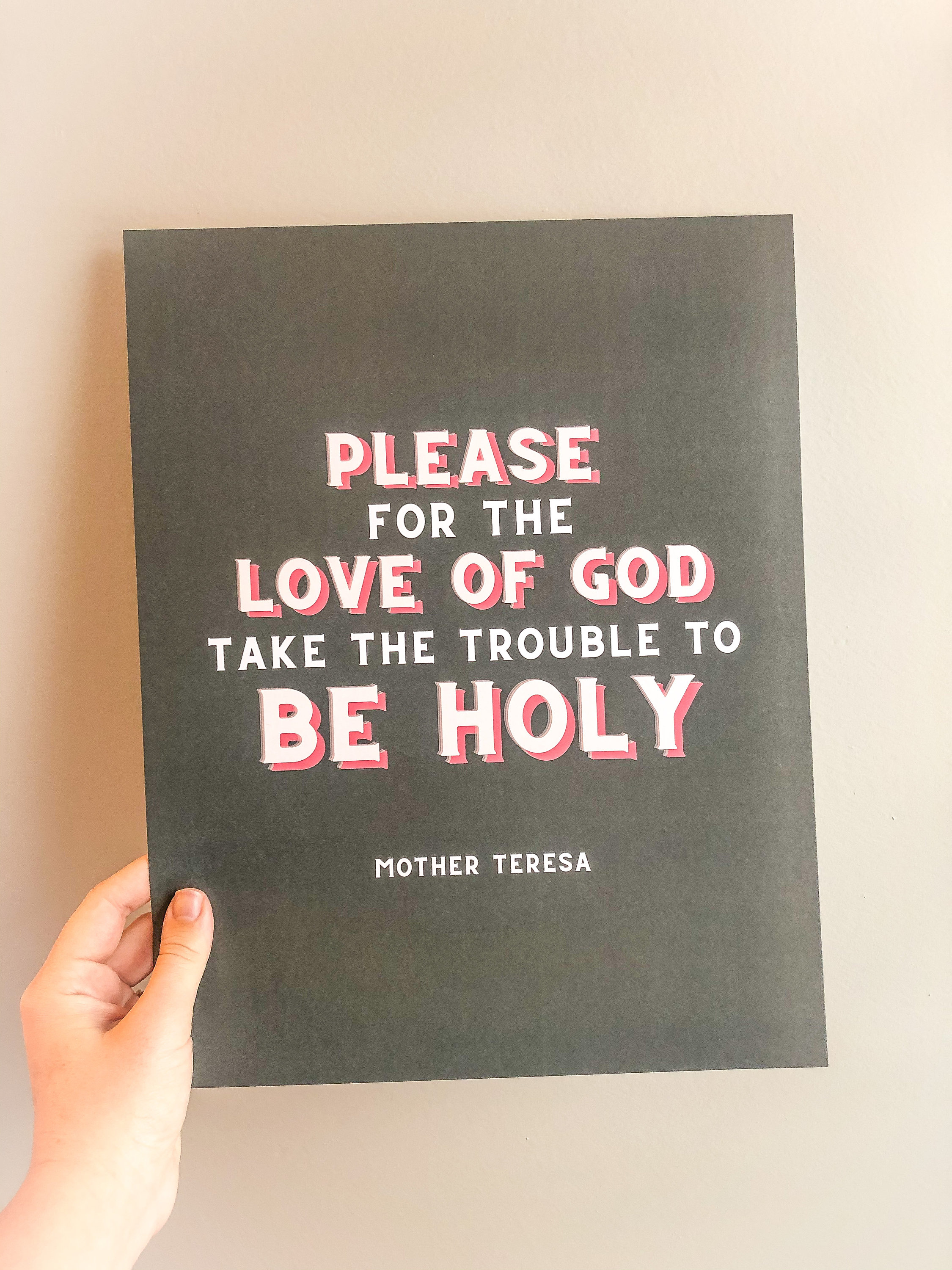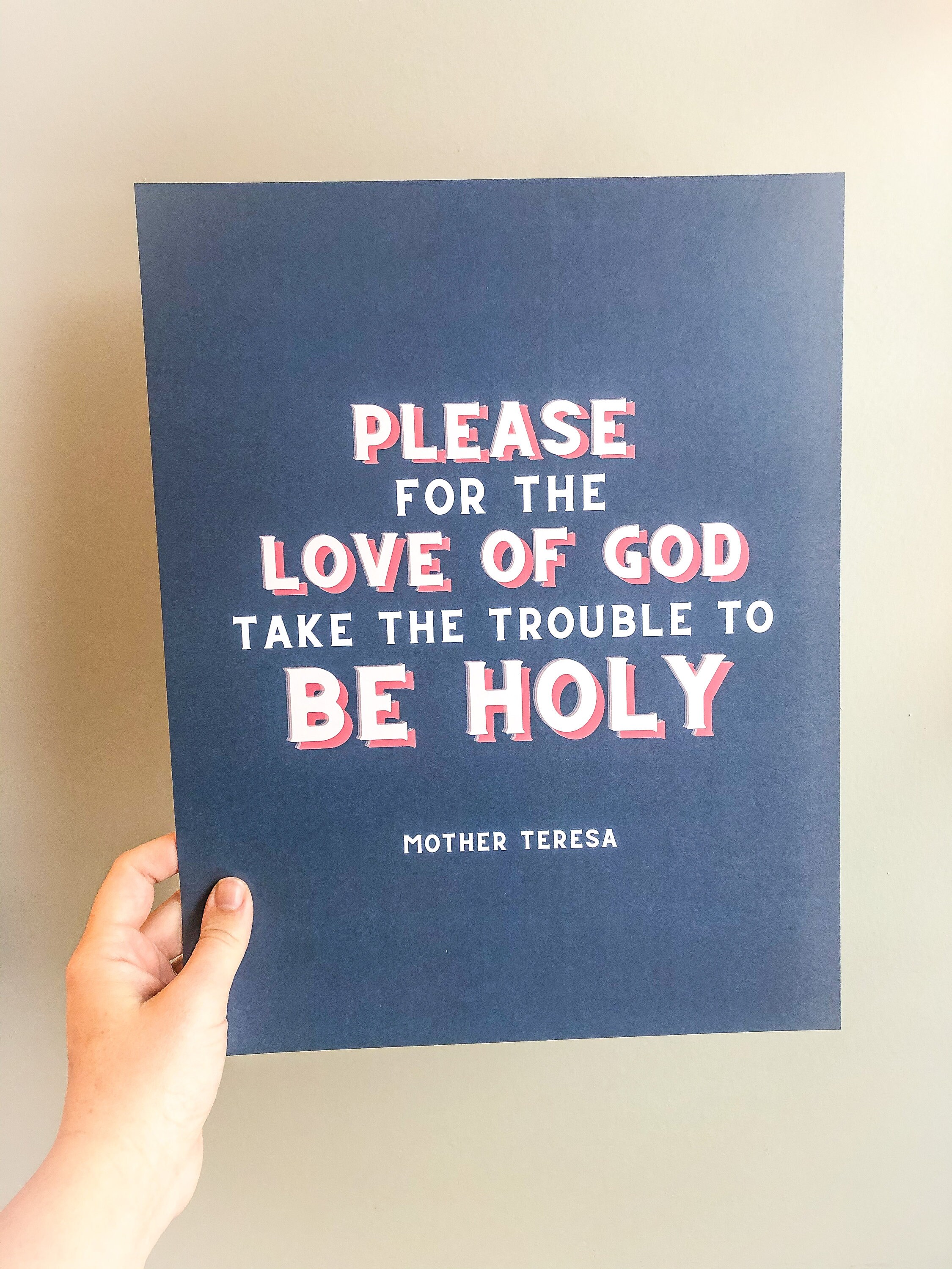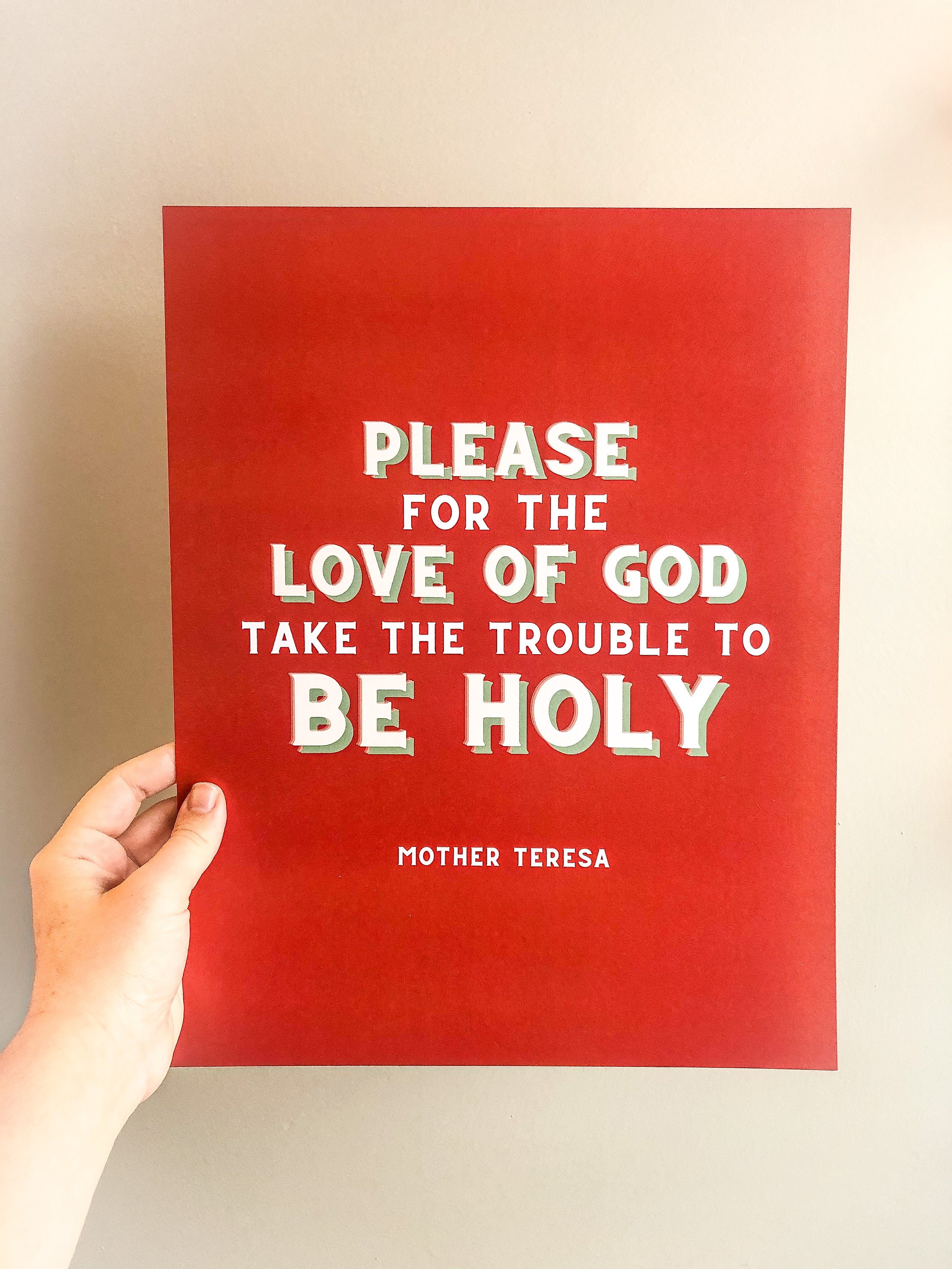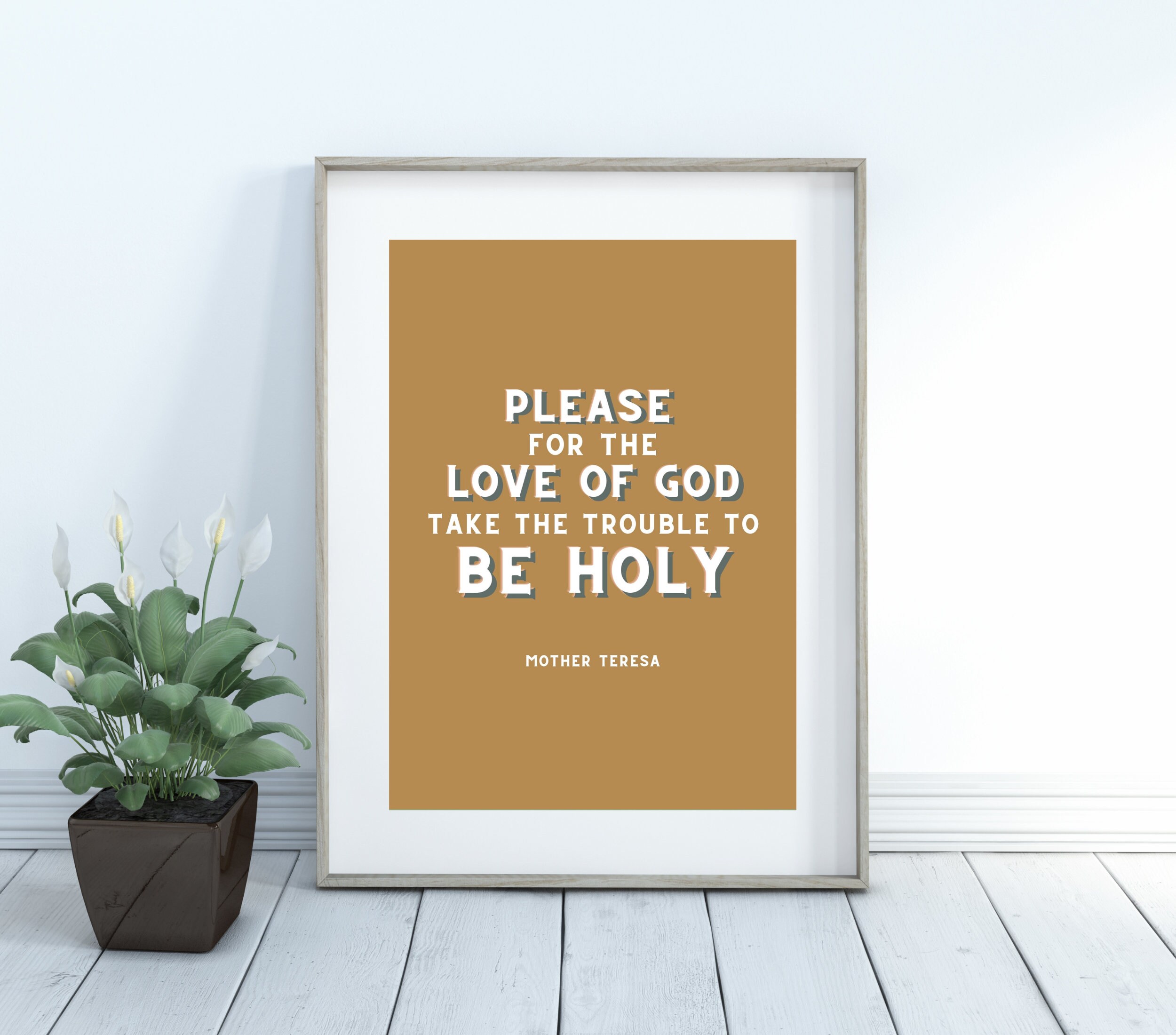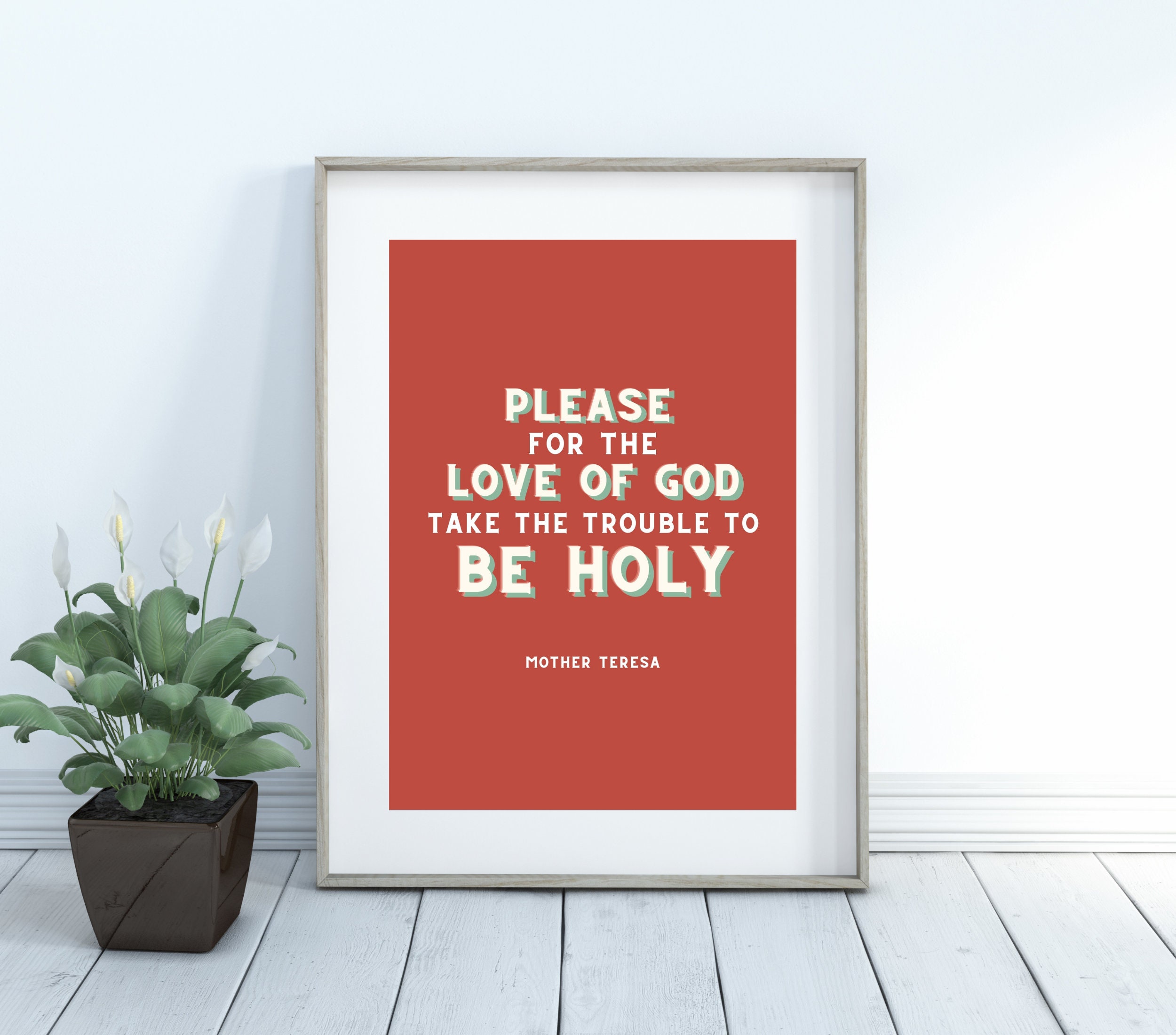 "Please, for the love of God, take the trouble to be holy." Mother Teresa