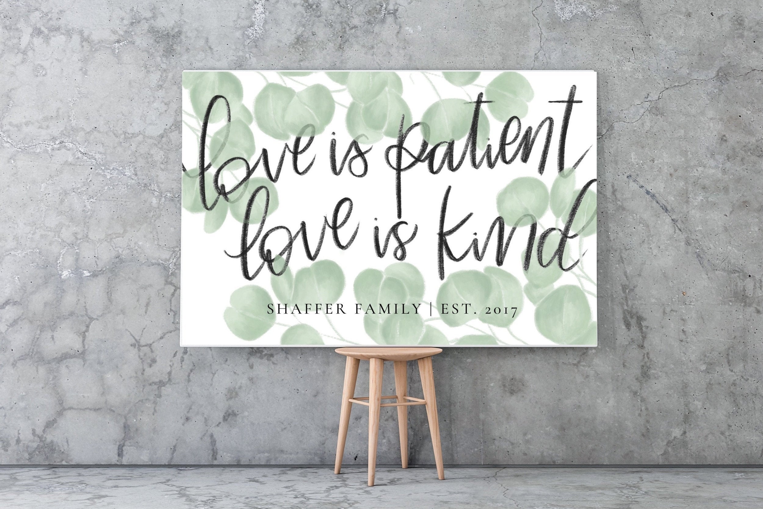 Personalized wedding gift with hand-drawn eucalyptus and handwritten quote from 1 Corinthians 13!